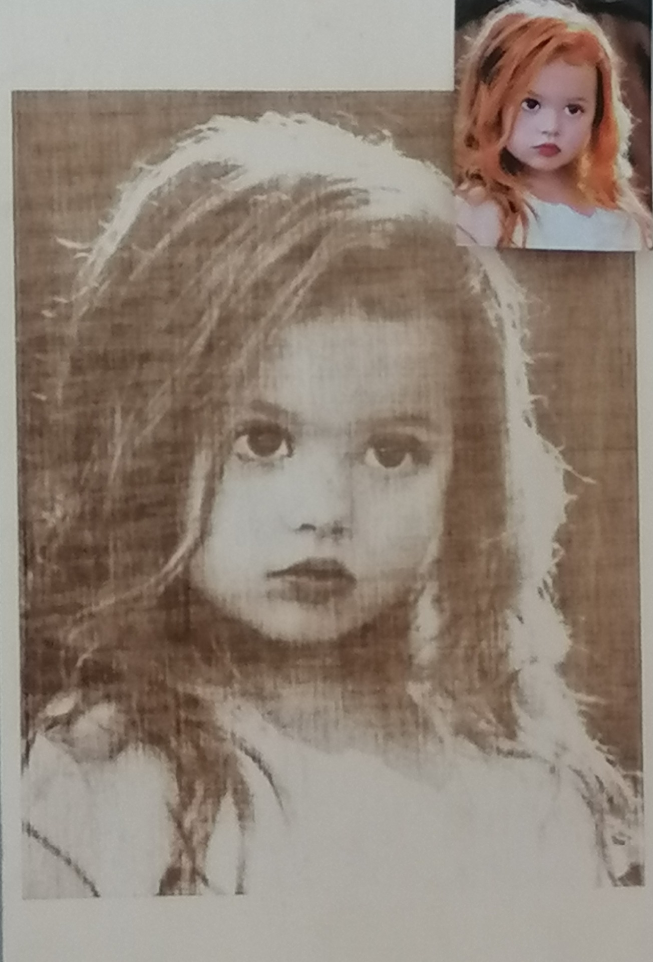 Gravure sur bois (contre-plaqué 4 mm) personnalisable à souhait avec vos photos, texte, dessin ... etc. Livrée avec support style porte assiette en contre-plaqué 5 mm.