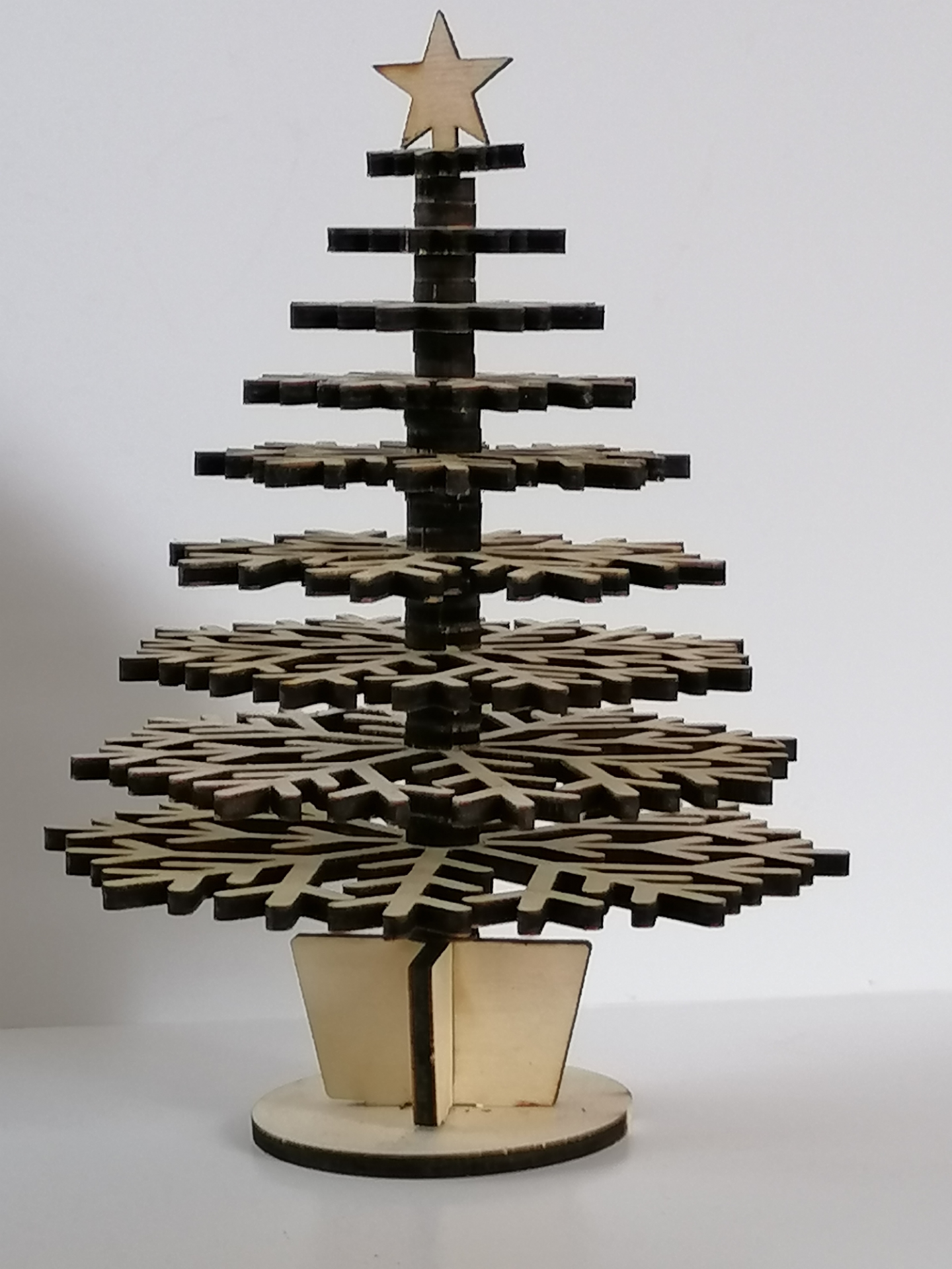 Décoration de table d'environ 19 cm de haut en contre plaqué 3 mm. Facile a monter, livré peint (feuillage vert et tronc marron) où en bois neutre pour pouvoir donner libre choix à votre imagination.